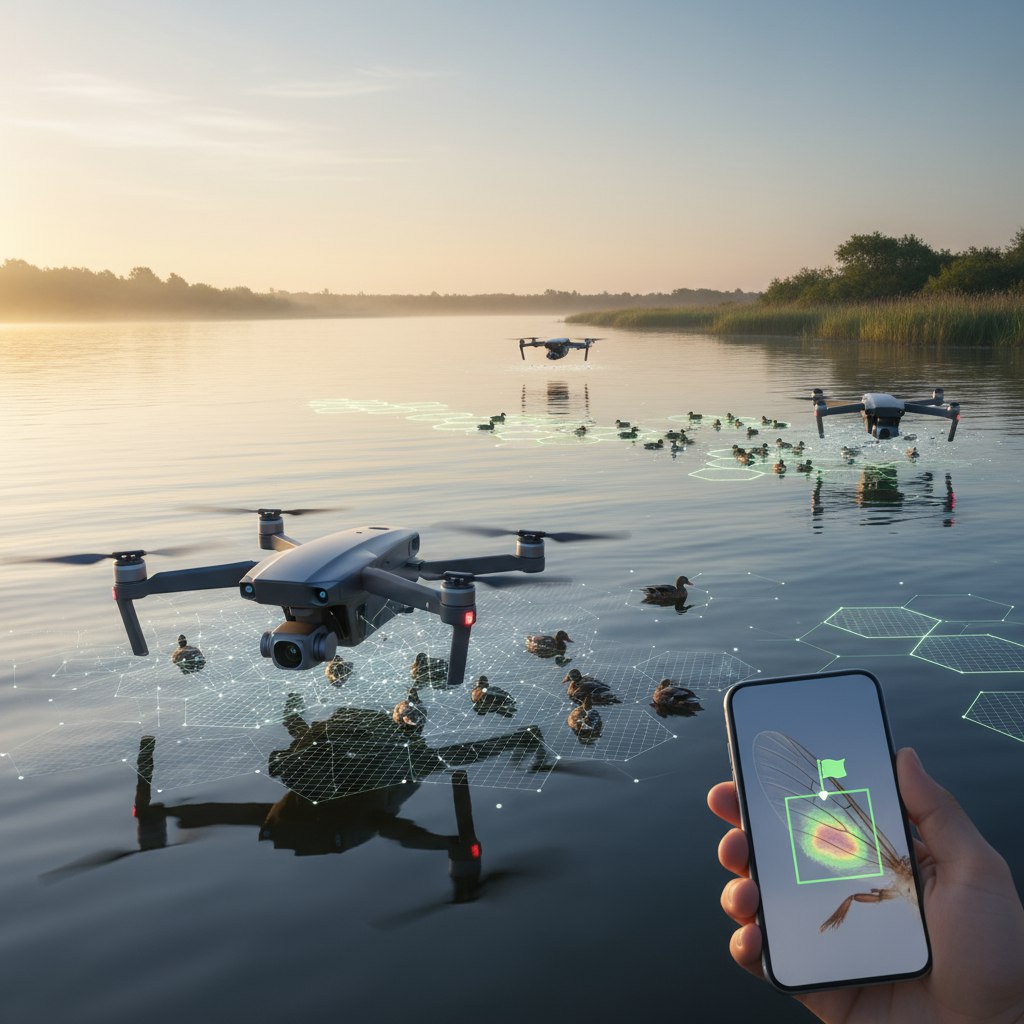 Дроны летят низко над водой, камера щёлкает кадры, а нейросеть находит в ряби озера не просто точки — уток: где плотнее, где редеет стая, где болото лучше, чем кажется со взгляда берега. В Миссури так теперь считают миграции — быстрее, безопаснее и без «человеческого угадай-ка». На другом конце карты смартфон фиксирует размытые крылья насекомого — и алгоритм уверенно поднимает флажок: тут, похоже, Anopheles stephensi, опасный новичок. Наука не романтизирует природу — она её считает. ИИ всего лишь дал ей новые глаза.